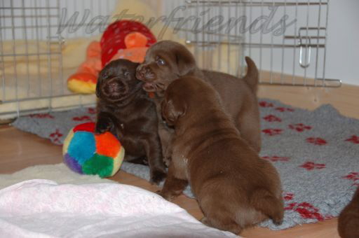 Die Welpen sind mehrfach entwurmt, geimpft, gechipt und von einem Zuchtwart des LCD abgenommen. Sie werden dann mit 8 Wochen mit einer Ahnentafel des LCD (VDH) und einem Impfpass, einer Kopie des Wurfabnahmeberichts und einer Mappe mit den wichtigsten Informationen, wie Futterplan abgegeben.